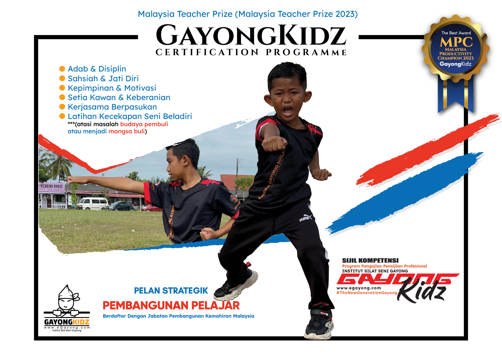 GayongKidz atau Program Pengajian Pensijilan Kompetensi GayongKidz merupakan sebuah produk (modul) yang membina kepintaran, kemahiran seni mempertahankan diri, motivasi dan kepimpinan kanak-kanak & remaja berminda lestari dan cergas. Program yang pertama seperti ini di Malaysia bermula sejak tahun 2022. Program ini dirangka dari MODUL GAYONGTVET yang dibangunkan oleh Institut Silat Seni Gayong (ISG) dibawah Noss ET-015-3:2023 Martial Arts Training, Jabatan Pembangunan Kemahiran Malaysia (JPK).